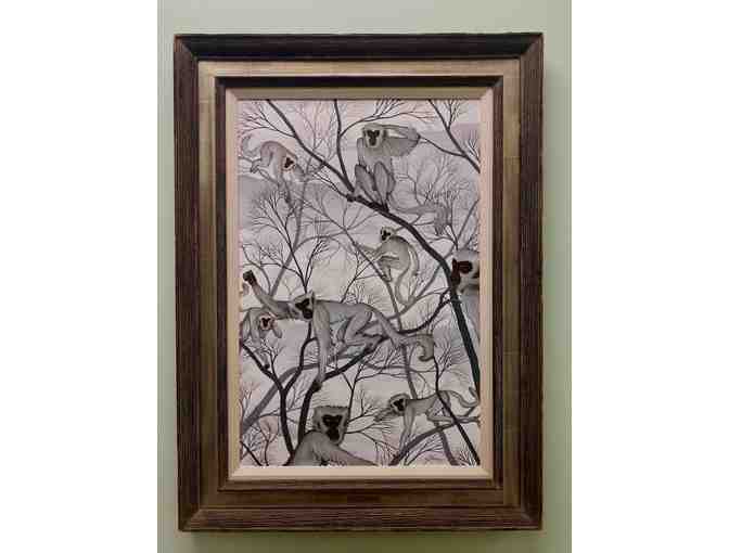 Go bananas with a bid on this oil painting of michievous monkeys climbing through a stunning winter landscape!