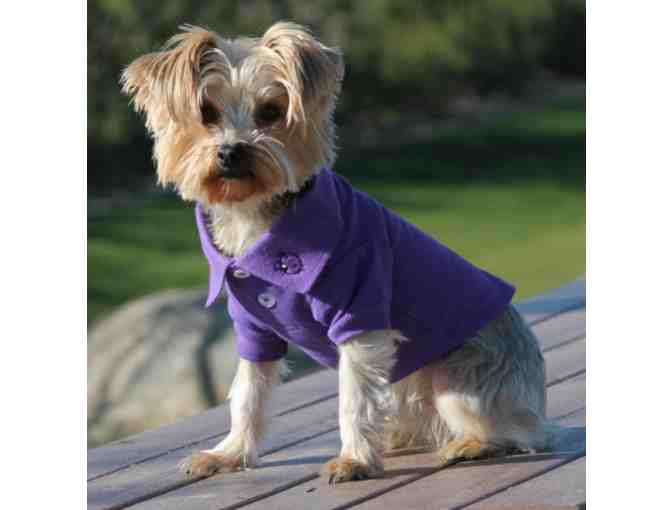 When your little buddy is dressed in this Ultra Violet Dog Polo, they will be the talk of the town.  This 100% cotton polo is perfect for any occasion where your dog wants to be dressy without sacrificing comfort. This lightweight polo is easy to wear with pearlized buttons that make dressing a breeze. The tailored ribbed sleeves and high-cut stay-dry belly provide a great fit.  Buttonhole opening for leash