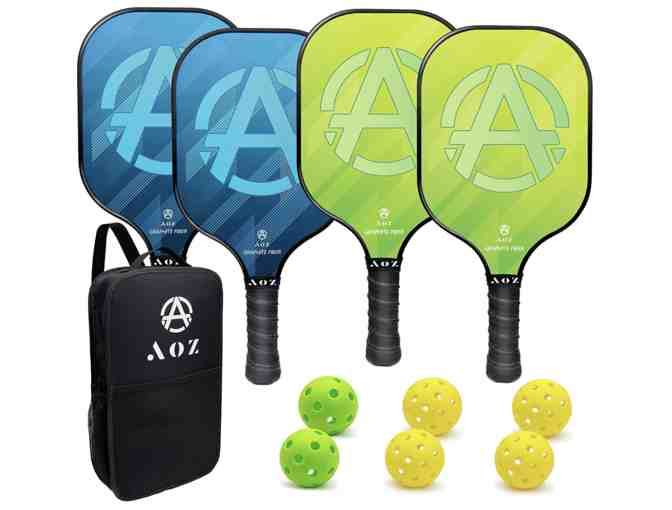 - 4 AOZINTL Pickleball Paddles (2 blue and 2 green each with graphite face, honeycomb core, and premium comfort grip)