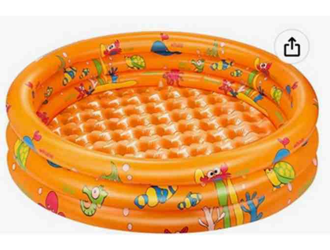 Turn your yard into a beach paradise for your two or four legged children or both with this inflatable pool. Pool is made of the PVC material (BPA-free, Non-toxic, Durable, Anti-aging) thickened to reduce the risk of punctures. When not used as a swimming pool - it can used as a sand box or ball pit.