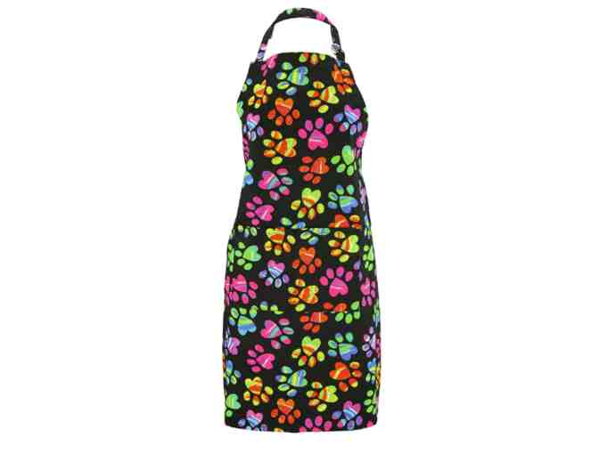 Add a splash of color and a dash of charm in the kitchen as well as keeping splashes off your clothes with this much-needed accessory. The cotton twill apron has two central pockets and adjusts to fit comfortably. It's all paws on deck while in the kitchen!