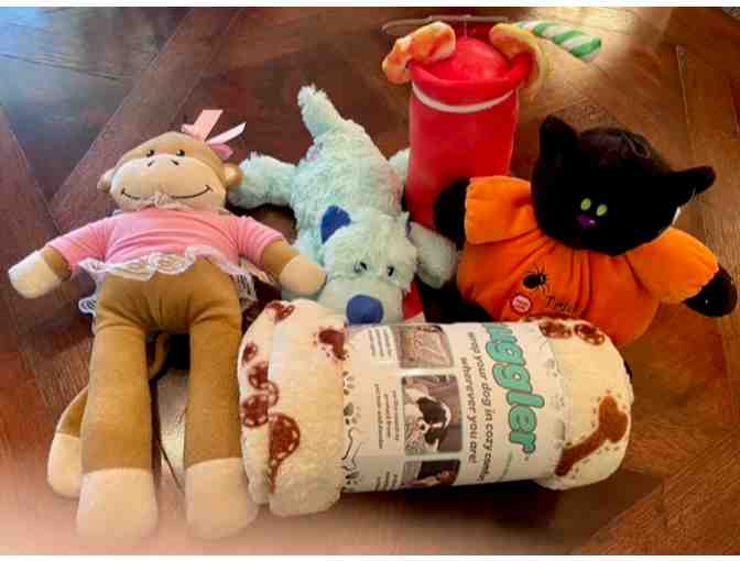 Zanies monkey 15” - Pumpkin cat 9” - Kong blue dog 10” - Sangria 8” +straws
