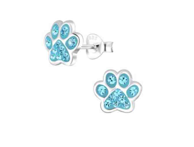 Display your love of dogs or cats with these beautiful paw-shaped sterling silver stud earrings. The earings are embellished with aqua bohemica crystals so they will always sparkle.