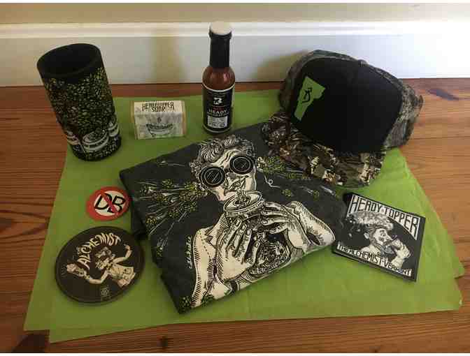Heady Topper t-shirt, Heady Topper coozie, soap, hat, Heady Craft Beer hot sauce, 3 bumper stickers and 6 coasters plus $50 gift card