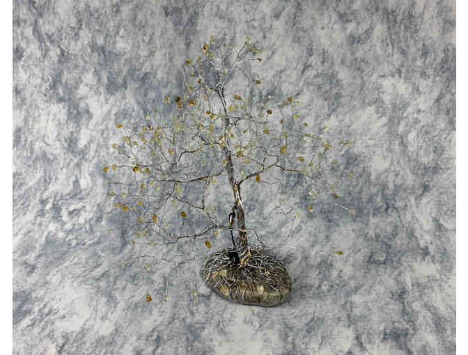 Add this beautiful piece to your home or garden! The tree branches are made of wire with a stone base and citrine leaves.