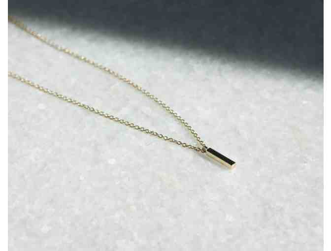 Pendant Details: the bar necklace is made from solid 14k yellow gold. The bar is 10mm in length and 2.25mm wide. The chain is 1mm wide.