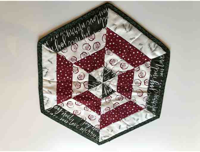 You are bidding on a homemade Table Topper with Christmas pattern. Size: 16" across
