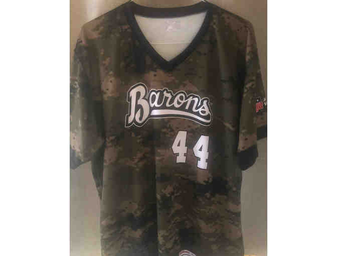 This is a NEW size Men's XL CAMO Jersey for #44 who is currently pitcher Felipe Tejada for the Birmingham Barons AA Minor League Baseball Team (the team Michael Jordan was a part of) and affiliated with the Chicago White Sox .