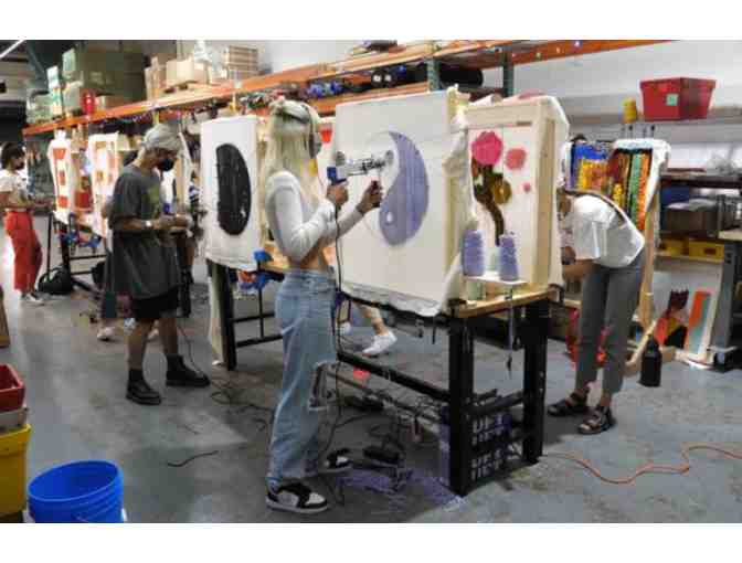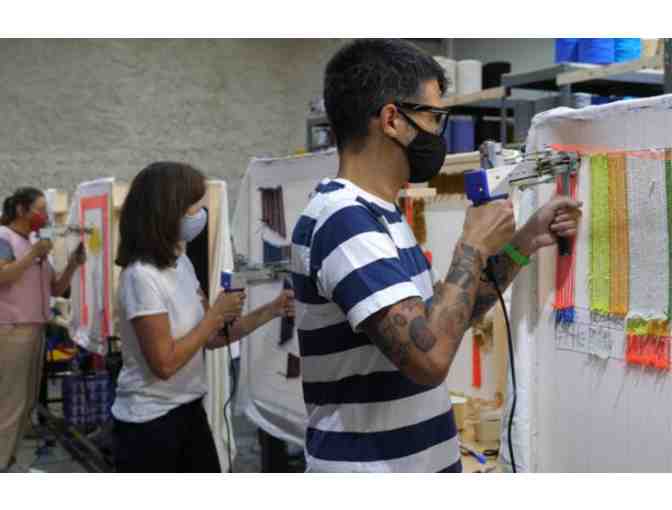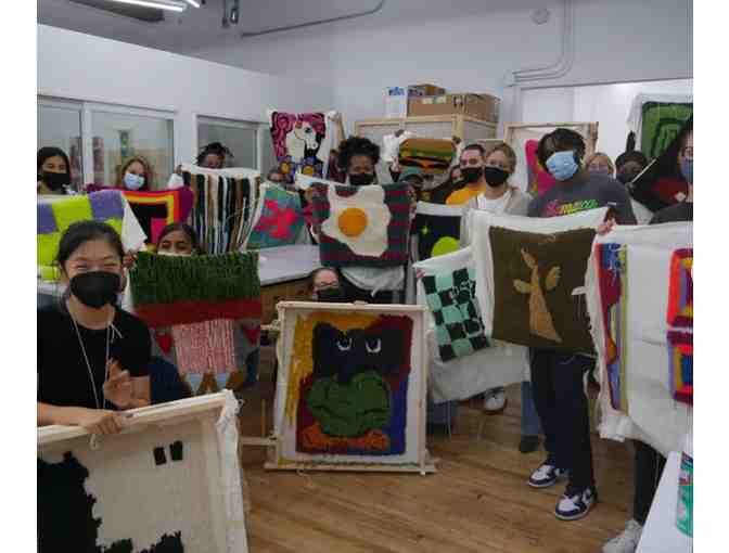 Join us for an in-person tufting workshop with Tuft the World! In this hands-on instructional class, participants will learn to use power tufting machines to create a rug or wall hanging. The 6-hour class will cover the basics of setting up a tufting frame and backing cloth, threading and operating tufting machines, and how to cut, glue, and finish a tufted piece. Participants will work on projects of their own design on a frame that can accommodate pieces 22 x 22 inches.