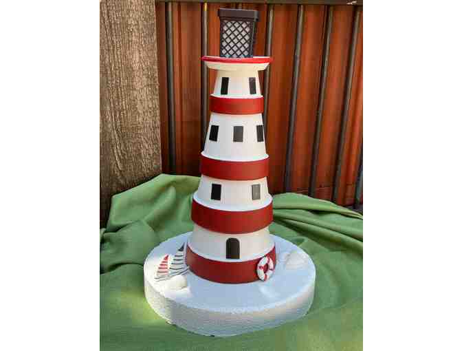 These lighthouses will bring a special element and create a playfull ambiance to any yard. Measuring 20 inches tall, our red and blue lighthouse uses solar to recharge, allowing its light to shine through the night. They are sold separately, but make a good pair for any bidder!