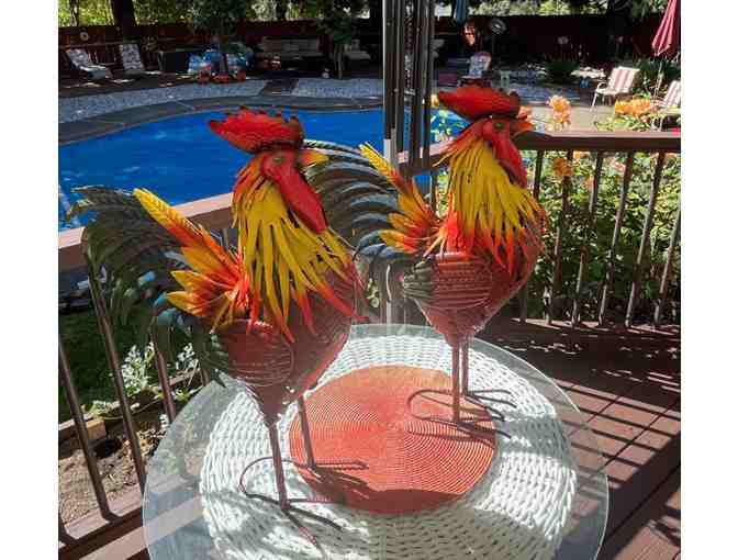 Some auction items receive more interest than others. Some completely fall flat. The good news is, we know for sure this one won't lay an egg...because it's a rooster, and it's made of metal. You'll be bidding on the pair (they've grown attached to one another).