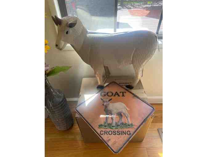 This metal goat might catch people by surprise - but adding a goat crossing sign will at least give them some warning!