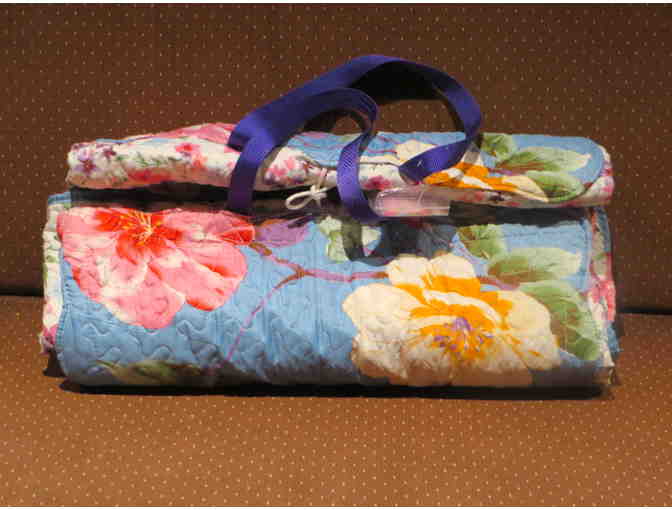 Use this 7X8-foot double-sided quilt blanket for picnics or as a child’s play surface. It folds into a compact package that’s has handles for easy carrying. Crafted by a local fabric artist, Sandra Fernandez.