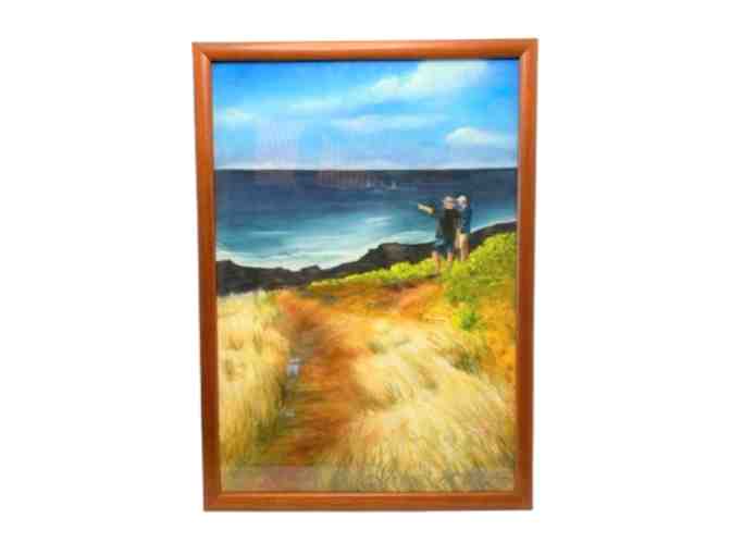 Watercolor painting giclee painted of Whale Watchers at Makauena Point by artist Gail Burke.