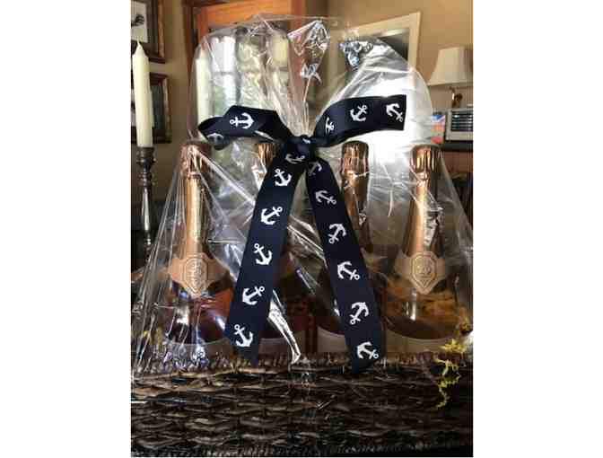 It's always important to keep a bottle of bubbly or two around for a special occasion or when the mood strikes. This beautiful basket of champagne is ready for you!