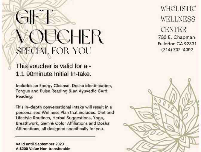 This voucher is valid for a one-on-one 90-minute initial in-take that includes: