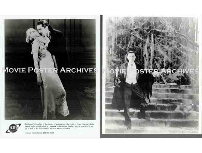 DESCRIPTION: This is a group of 4 movie stills measuring approx. 8x10 each in a variety of scenes. One still is from the Sci-fi Channel for their Massive Movie Marathon, one still is from a Universal offering of a 60th Anniversary along with Boris Karloff as Frankenstein (so apparently from 1991), one photograph and one cean reproduction still. SEE IMAGES.