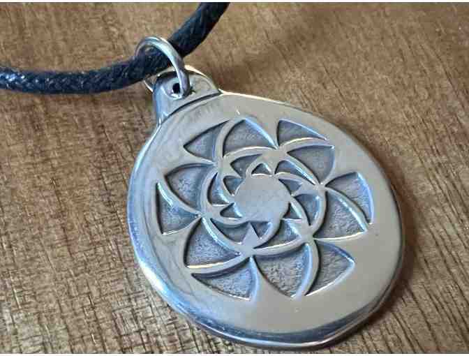 Made by hand in the United States, this is a stunning lead-free pewter pendant on a black cord.