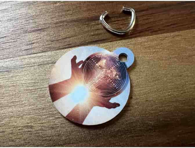 Dual Sided pet tag - a perfect accessory to add to your dog or cat's collar to share your love of the labyrinth! One side features a white Chartres Labyrinth design on a black background, and the other is a digital design done by Annika Moore of Veriditas, featured in earlier renditions of our annual calendar and other projects.