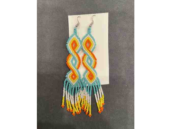 Turquoise, White, Yellow and Orange Beaded Earrings