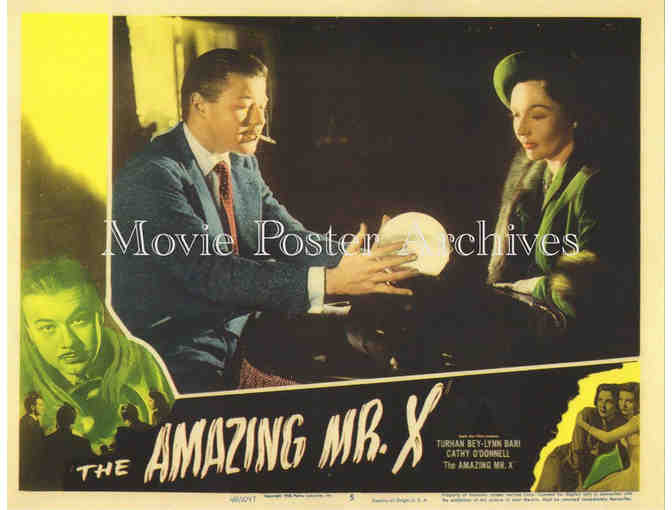 AMAZING MR. X, 1948 REPRO Lobby Card #5, Turhan Bey, Lynn Bari, Cathy ODonnell, Richard Carlson The Amazing Mr. X, the 1948 Bernard Vorhaus sance horror starring Turhan Bey, Lynn Bari, Cathy ODonnell, Richard Carlson, Donald Curtis and Virginia Gregg.