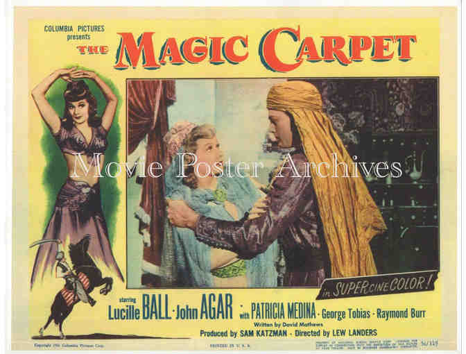The Magic Carpet, the 1951 Lew Landers Arabian fantasy comedy starring Lucille Ball, John Agar, Patricia Medina, George Tobias, Raymond Burr, Gregory Gaye, Rick Vallin and Jo Gilbert.