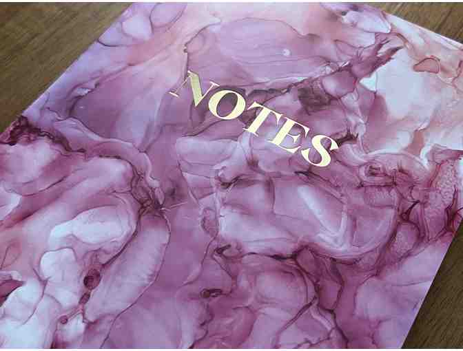 The only thing missing from this item, is the future notes of the lucky winning bidder of this item. This journal is truly a beauty with beautiful pink/white/lavendar watercolor effect, and a golden foil embellishment in the word NOTES on the front.