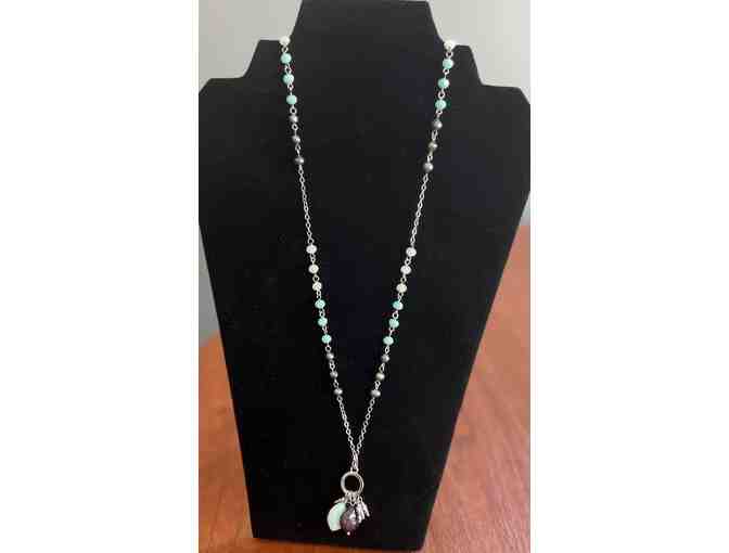 White House Black Market Convertible Necklace - Silver Chain with Teal and Iridescent Beads