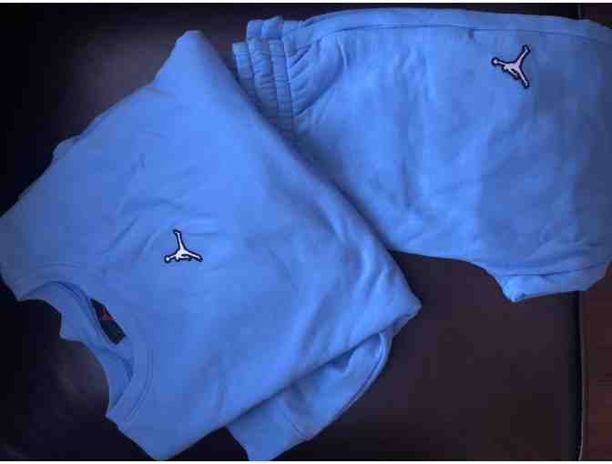 o Girls Size Large University Blue Pants with matching sweatshirt with Jordan logo, $85 Retail