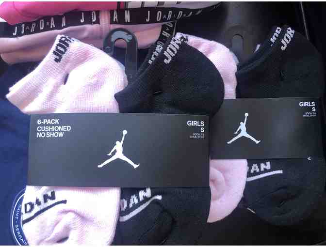 o 6 pack Girls Small (7-9) Black, White and Pink Jordan Socks