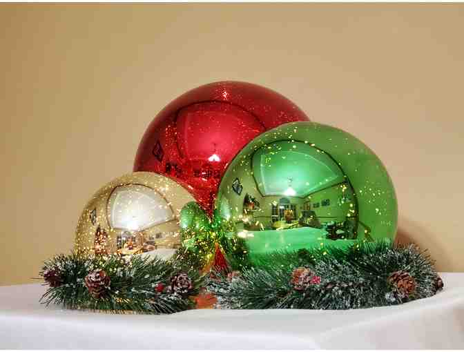 These three mercury glass -styled globes display beautiful Christmas red, green and gold colors. Turn them on and off yourself; or the best feature is turn them on at a certain time and they will turn off 5 hours later. This is a nightly occurence until those decorations are stored for another year.