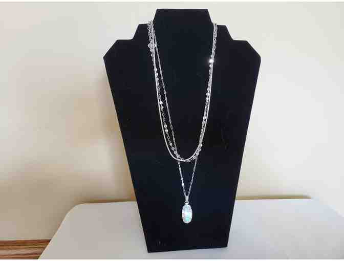 This silver 3-string necklace with pendant can go with just about any outfit. Each string is detachable so you can have a variety of looks. A great addition to your jewelry collection.
