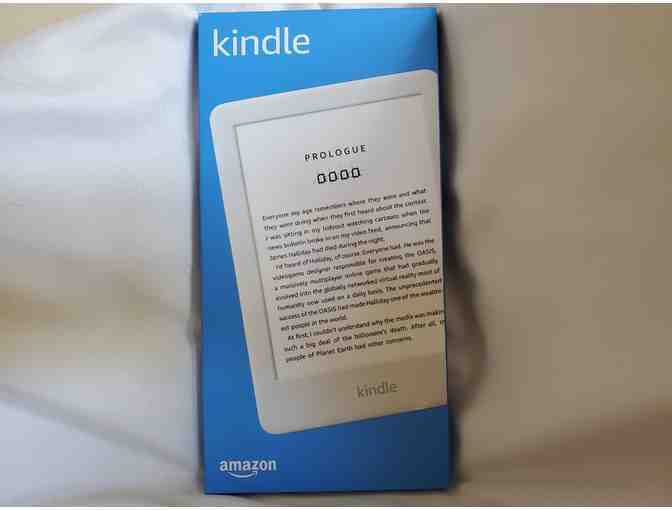 Load your reading materials onto this Kindle. It has a 6" touch display, built-in light, wifi and is 8 GB. The light lets you read comfortably for hours, indoors and outdoors.