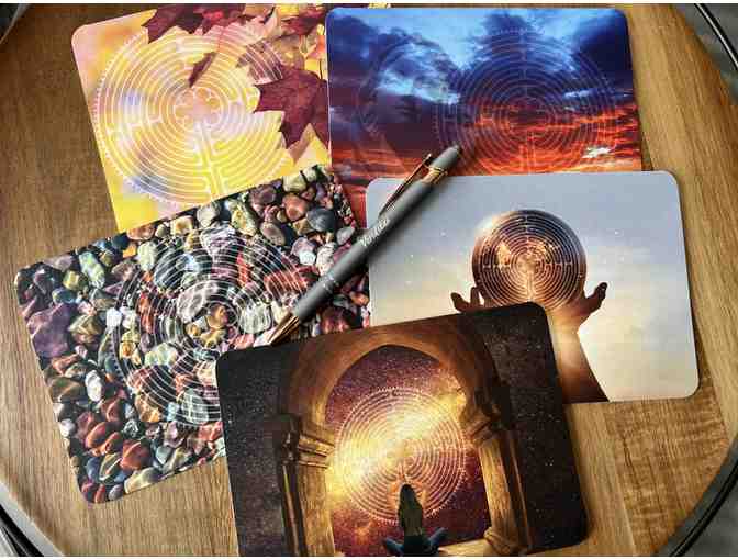 This is such a fun and unique set of cards.  Each card comes with an envelope and features rounded corners.  The artwork was created by Veriditas Staff Memer Annika Moore for various Veriditas events over the years.  Pen your perfect correspondence with your also-included grey Veriditas pen with beautiful rose-gold and silver colored appointments.  Bid on this beautiful set today!