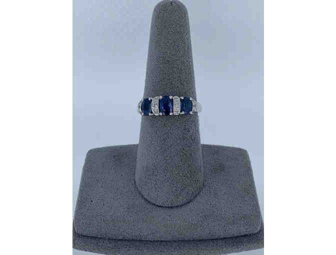 Sapphire and diamond band ring set in 14K white gold with 3 sapphires