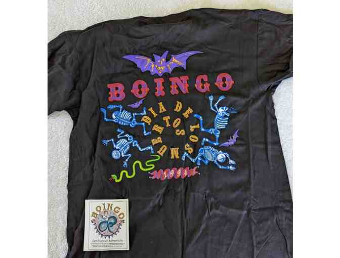 BOINGO with Dia De La Muertos Figures 1994. Reverse Print. Large cotton Q Tee. Certified Oingo Boingo Merchandise