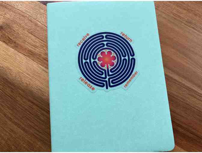 This "definitely delightful" Noted journal is adorned with a custom sticker from the Veriditas store.  The handy elastic band keeps it all together.