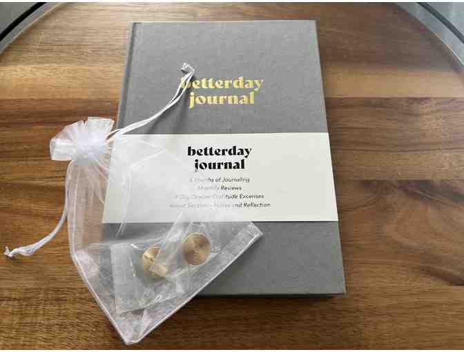 -betterday journal - an everyday mindfulness and gratitude journal. Each book includes 6 months of journaling - 184 days of prompts, 9 feel-better exercises to help you dig deeper, monthly reviews and notes section. With daily prompts to guide you along the way and an easy structure to focus your mind, the Betterday Journal aims to shift the way you look at the world.  Hardback textured cover with matte gold foiling, satin bookmarker, 100gsm FSC certified ivory paper and is A5(14.8 x 21cm) in size.