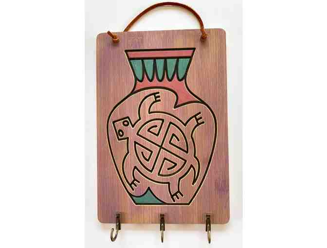 6 inch X 9 inch Bamboo Key Holder. We hang ours on the coat rack next to the front door. Our keys never get misplaced anymore.
