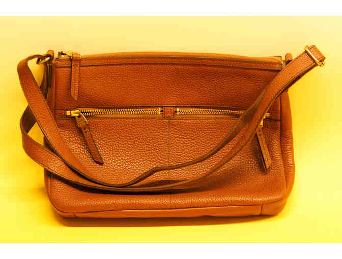Brown leather Fossil handbag Multi pocket 12"W x 10"H