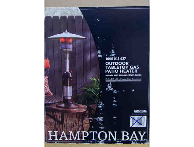 Hampton Bay Outdoor Tabletop Gas Patio Heater Keep your patio warm and inviting in any temperature with this 11,000 BTU heater Bronze and stainless steel finish 21" diameter 39" high