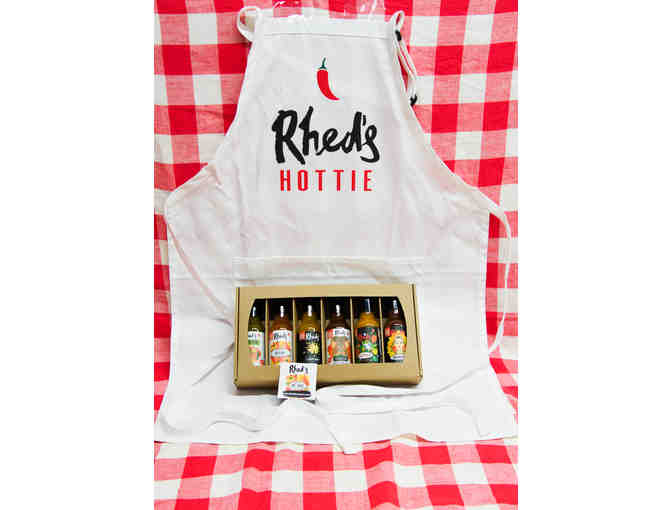 Rhed's is a local Rhode Island company. There hot sauce is made right here in the Ocean State! The set includes six 5 oz bottles of delicious hot sauce! Club Jalapeno, Original, Lemon Drop, Deja Vu, Citra, Morita and a Rhed's Hottie Apron