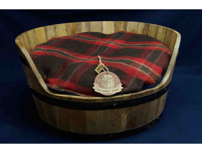 Designed after an old wooden barrel. Stuffed with a soft and luxurious plaid cushion. Perfect compliment for you home furnishings and your pet will love the comfy plush bed!