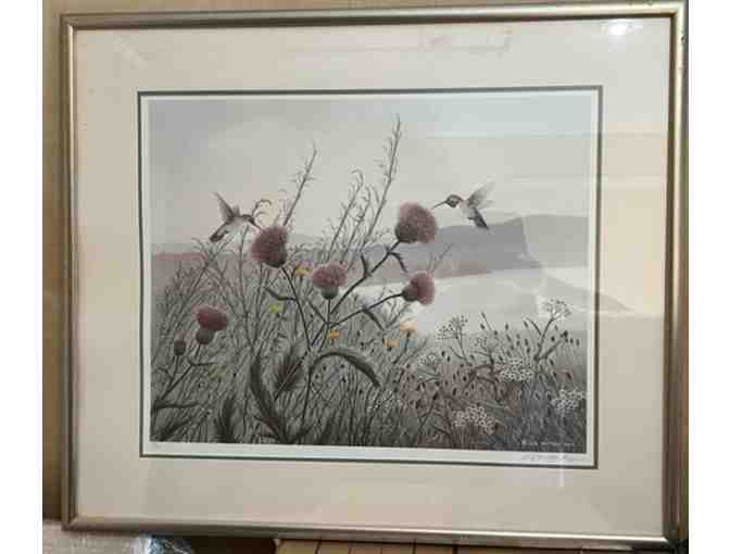 Liz Mitten-Ryan Limited Edition Framed Print - Hummingbirds on Thistles