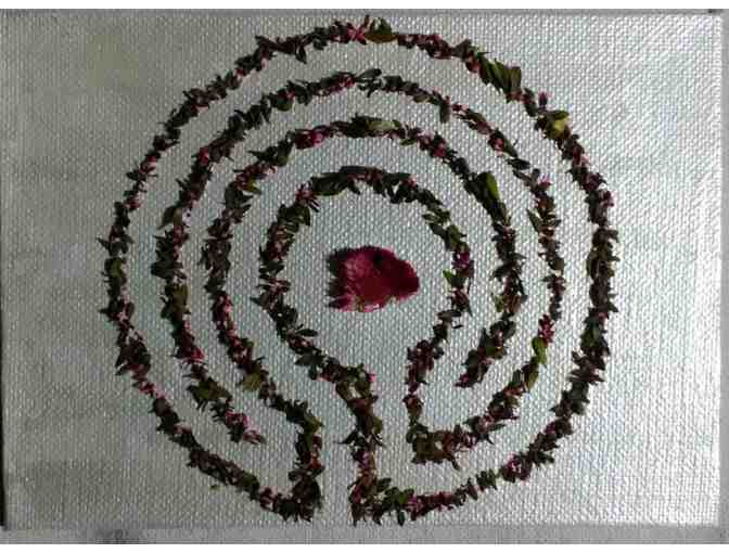 5x7 Canvas with 3 Circuit labyrinth made of flower seeds and leaves