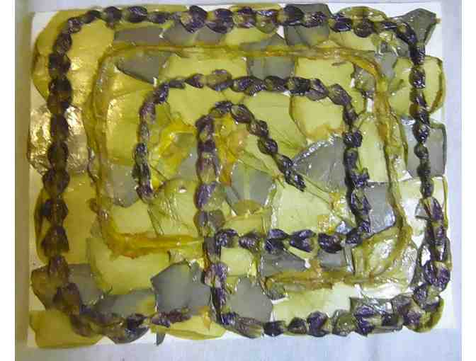 8x10 cardboard with labyrinth created with rose petals, string, and pumpkin flowers