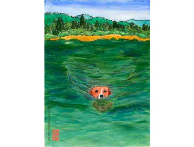 'Kaya in the Klamath' is 11×14, painted with sumi ink and Japanese watercolors on watercolor paper.
