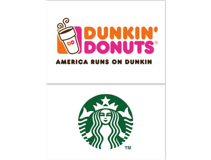 Save some time and treat yourself with this To-Go Coffee Bundle! It includes giftcards for your favorite coffee shops: Dunkin' ($15) and Starbucks ($40)!