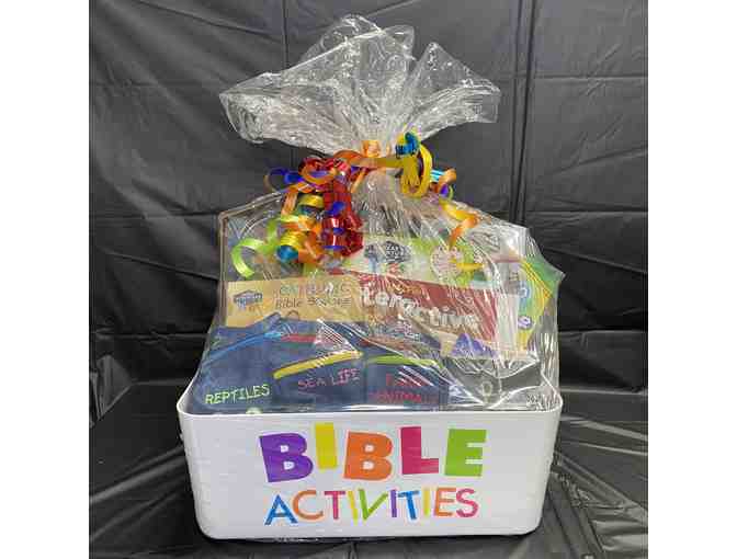 Everything your toddler needs to expereince Jesus in a fun meaningful way! This basket includes The My First Catholic Bible Stories, Play Through the Bible, My First Interactive Mass Book, The Great Adventure Kids Catholic Bible Activities, The Shepherd on the Search Family Activity, Crafting Materials and a Wooden Nativity Puzzle.