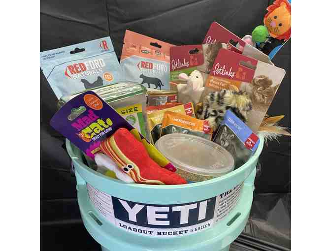 Treat your cats with a variety of different treats and toys! Including, red ford naturals cat treats, refillable cat nip toys, cat teaser, and even a Yeti 5 gallon bucket!